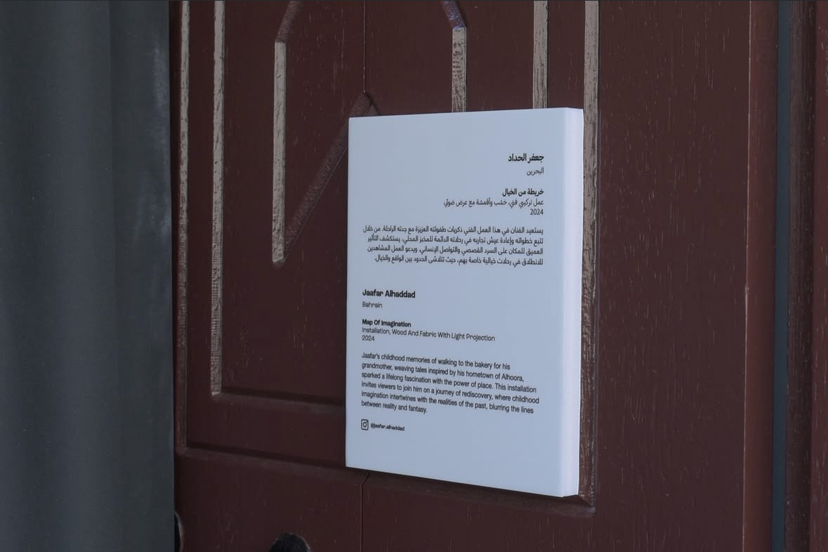 Jaafar’s childhood memories of walking to the bakery for his grandmother, weaving tales inspired by hometown of AlHoora, sparked a lifelong fascination with the power of place. This installation invites viewers to join him on a journey of rediscovery, where childhood imagination intertwines with the realities of the past, blurring the lines between reality and fantasy.
